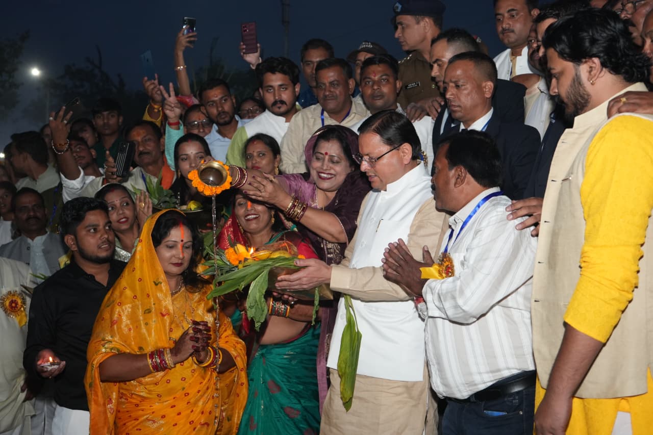 मुख्यमंत्री धामी ने खटीमा में सूर्य षष्ठी महोत्सव में की सहभागिता, अस्ताचलगामी सूर्य को दिया अर्घ्य