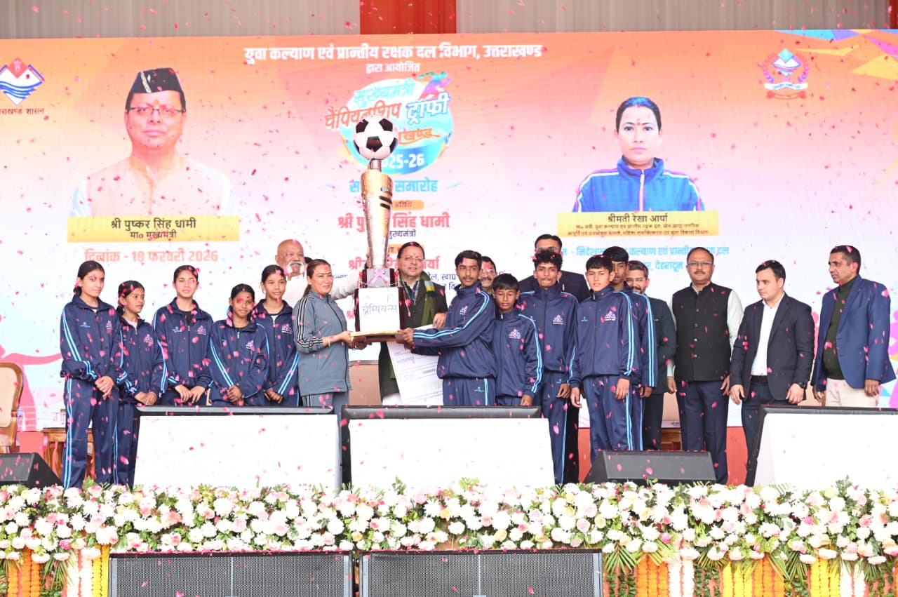 मुख्यमंत्री पुष्कर सिंह धामी ने बुधवार को ननूरखेड़ा, देहरादून में मुख्यमंत्री चैम्पियनशिप ट्रॉफी 2025-26 के समापन समारोह में प्रतिभाग किया। इस अवसर पर मुख्यमंत्री ने देहरादून जनपद को विजेता ट्रॉफी एवं 05 लाख रुपये का चेक प्रदान किया। मुख्यमंत्री ने कहा कि यह भव्य समापन