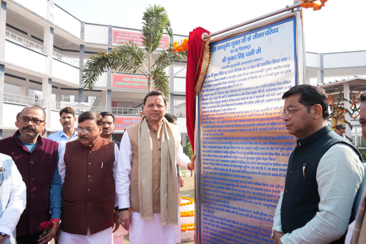 पंडित राम सुमेर शुक्ल की 47वीं पुण्यतिथि पर मुख्यमंत्री पुष्कर सिंह धामी ने श्रद्धांजलि दी रुद्रपुर मेडिकल कॉलेज परिसर में पंडित शुक्ला जी की प्रतिमा पर माल्यार्पण और शिलापट्ट का अनावरण विभिन्न क्षेत्रों में उत्कृष्ट कार्य करने वाले 11 व्यक्तियों को मुख्यमंत्री द्वारा सम्मानित किया