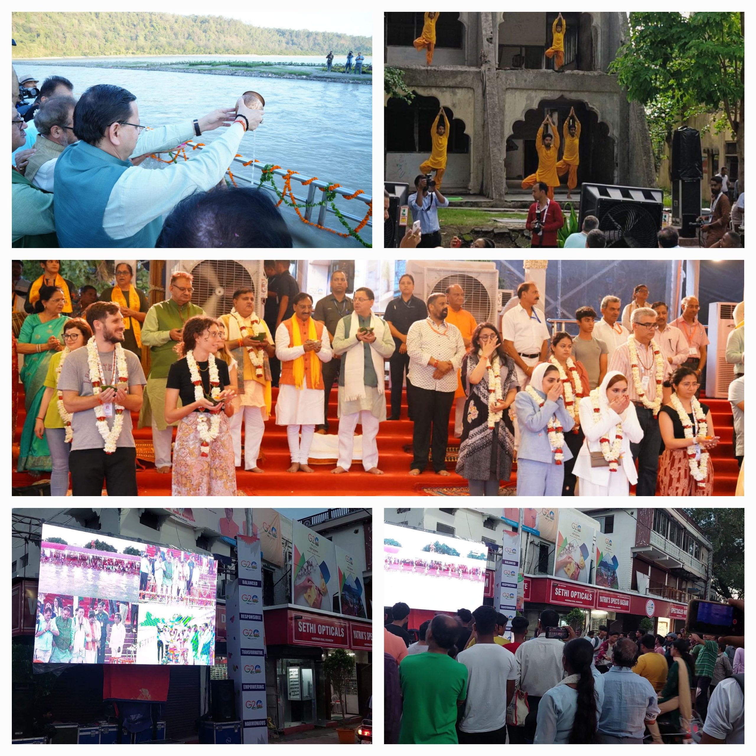 प्रेसीडेंसी ने एक भ्रमण कार्यक्रम भी आयोजित किया था जिसमें प्रतिनिधियों ने बीटल्स आश्रम का दौरा किया और उसके बाद त्रिवेणी घाट पर गंगा आरती का अनुभव किया। पिछले तीन दिनों में, प्रतिनिधियों ने उत्तराखंड के स्थानीय व्यंजनों का आनंद लिया और राज्य की संस्कृति और विरासत का अनुभव किया। अब इफ्रास्ट्रक्चर वर्किंग ग्रुप की अगली और आखिरी बैठक 19-20 सितंबर 2023, खजुराहो, मध्य प्रदेश में होगी। इस दौरान गंगा आरती कार्यक्रम में प्रदेश के मुख्यमंत्री पुष्कर सिंह धामी, सांसद रमेश पोखरियाल निशंक, मंत्री प्रेम चंद अग्रवाल, ऋषिकेश मेयर अनिता ममगाईं, देहरादून मेयर सुनील उनियाल गामा, विधायक मुन्ना सिंह चौहान, खजान दास, पूर्व जिला पंचायत अध्यक्ष मधु चौहान, सहित शहर के कई गणमान्य व्यक्ति सहित प्रशासन के अधिकारी मौजूद रहे।