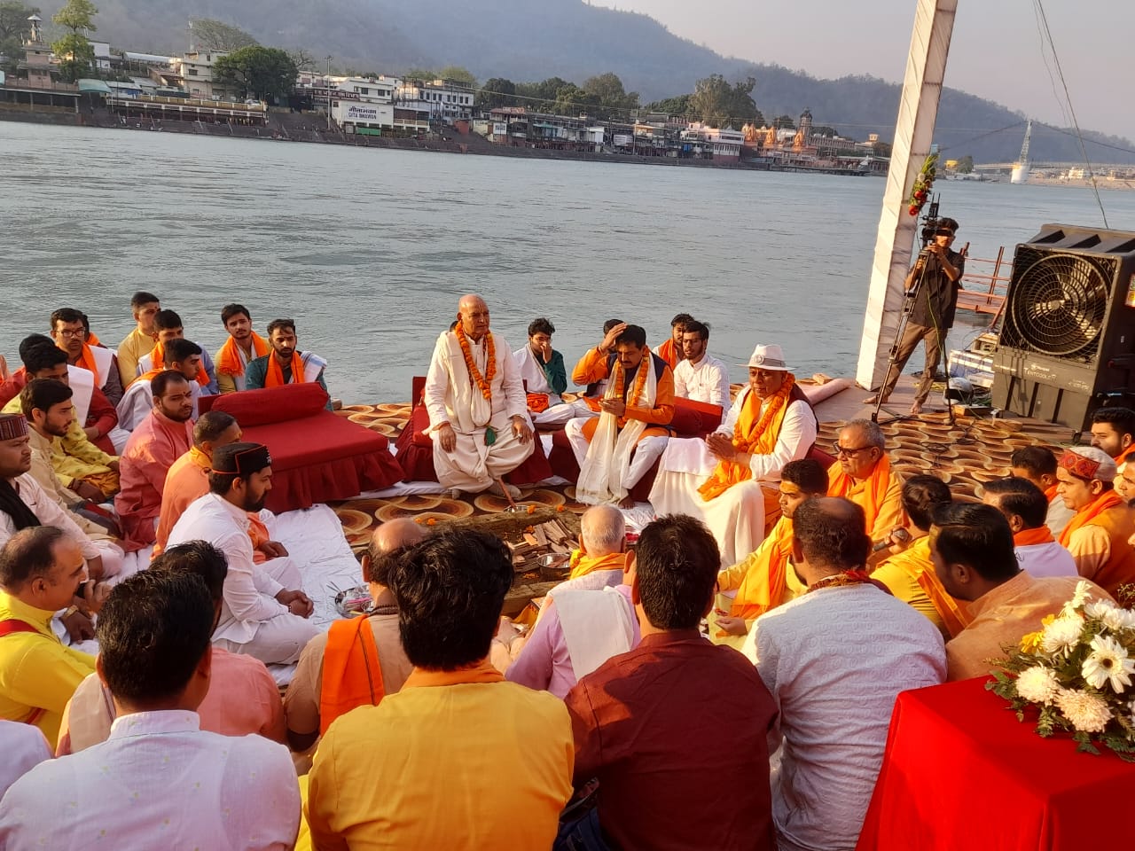 आज सुबह मुनिकीरेती शत्रुघन घाट पर शत्रुघ्न मंदिर के मंहत मनोज प्रपन्नाचार्य की अध्यक्षता में आयोजित एक सौ ब्राह्मणों द्वारा अनुष्ठान के मुख्य आचार्य गिरीश कोठियाल, नरेंद्र सकलानी, सुशील नौटियाल, सुखबीर गुंसाई , आचार्य शिव प्रसाद सेमवाल के संचालन में विश्व कल्याण, भारतवर्ष को हिंदू राष्ट्र बनाए जाने, और चार धाम की यात्रा को सुखमय में बनाए जाने के लिए धार्मिक अनुष्ठान के उपरांत द्वारिका के स्वामी नारायण ब्रह्मचारी और द्वारका पीठाधीश्वर स्वामी सदानंद सरस्वती महाराज के शिष्य द्वारकाधीश से पहुंचे नारायण ब्रह्मचारी द्वारा विश्व धर्म एवं समाज के कल्याण के लिए भूपेंद्र मोदी को राजश्री की उपाधि से नवाजा गया।