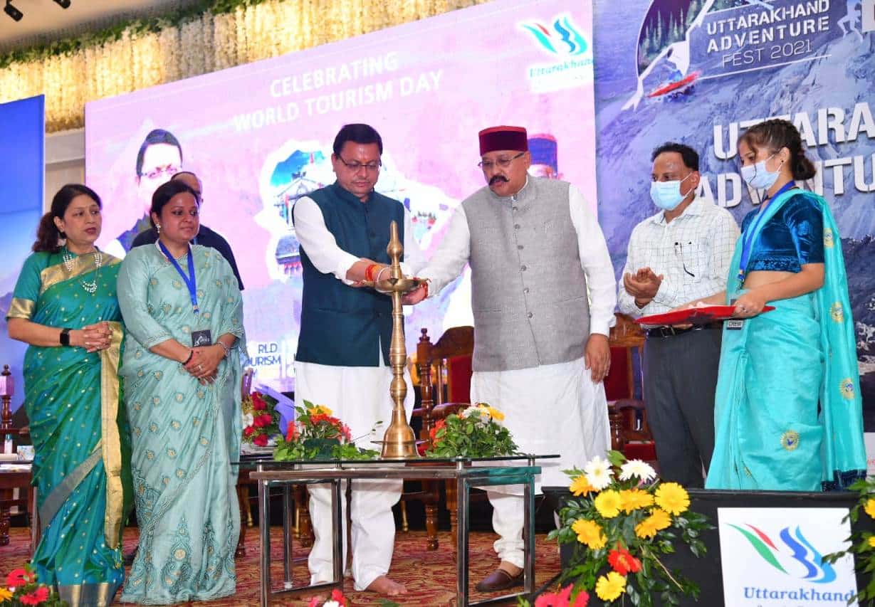मुख्यमंत्री पुष्कर सिंह धामी ने सोमवार को विश्व पर्यटन दिवस के अवसर पर सॉलिटेयर फार्म मालसी, देहरादून में उत्तराखण्ड एडवेंचर फेस्ट में प्रतिभाग किया। इस दौरान उन्होंने पर्यटन पर आधारित लगाई गई प्रदर्शनियों का अवलोकन भी किया। साथ ही मुख्यमंत्री ने घोषणा की कि पर्यटन परियोजनाओं के विशेषज्ञों के साथ मिलकर एक पर्यटन सुविधा एवं निवेश प्रकोष्ठ का निर्माण किया जायेगा। पर्यटन उद्योगों से संबंधी सभी प्रस्तावों पर पर्यटन विभाग द्वारा ही कार्यवाही की जायेगी, न कि उद्योग विभाग के द्वारा। उत्तराखंड के पर्यटन स्थलों के लिए बहुस्तरीय कार- लिफ्ट शहरी विकास विभाग और आवास विभाग द्वारा एक परियोजना शुरू की जायेगी। तो वहीँ नवंबर, 2021 में कुमाऊं के रामनगर में साहसिक कार्य पर निवेश सम्मेलन का आयोजन किया जायेगा। खेल विभाग की ओर से पंडित नैन सिंह सर्वेयर पर्वतारोहण प्रशिक्षण संस्थान पर्यटन विभाग को सौंपा जाएगा। उत्तराखंड के पर्यटन उद्योग को एक स्थायी, पर्यावरण के अनुकूल उद्योग के रूप में विकसित करने के मार्ग तलाशने के लिए पर्यटन मंत्रालय के तहत ईकोटूरिज्म विंग का गठन किया जाएगा। ईकोटूरिज्म विंग का उद्देश्य दीर्घकालिक विचारों को ध्यान में रखते हुए सामाजिक सहभागिता व सामाजिक नेतृत्व की भागीदारी के साथ ईकोटूरिज्म का विकास सुनिश्चित करना होगा। उन्होंने कहा कि उत्तराखंड को आने वाले दस वर्षों में पर्यटन के क्षेत्र में नंबर वन राज्य बनाने का प्रयास किया जायेगा। प्रदेश में पर्यटन एवं ऊर्जा के क्षेत्र में राज्य में अनेक संभावनाएं हैं।